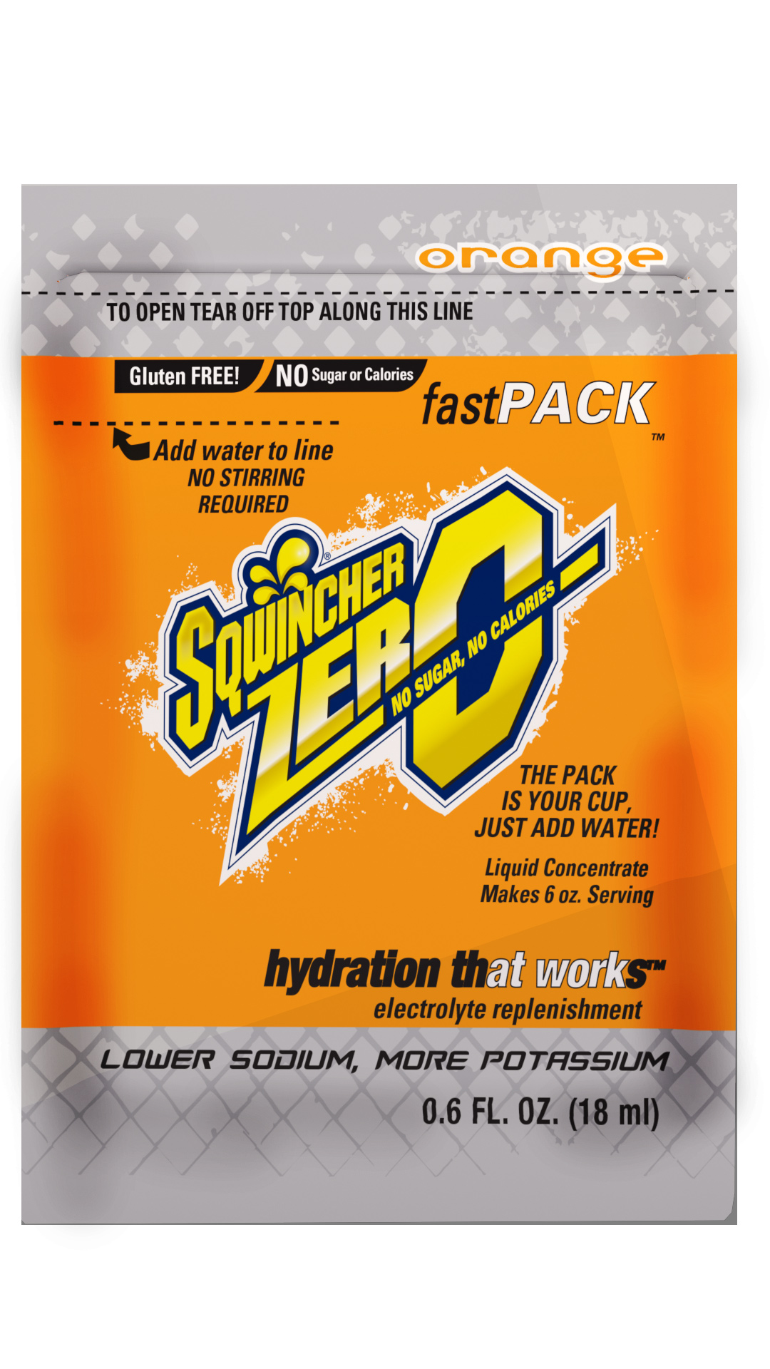Sqwincher Fast Pack multi-talented pouch is as easy as hydration gets. The pouch doubles as a cup! All you have to do is add water to the mix and you’re good to go. Now with zero calories.