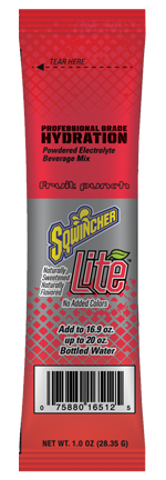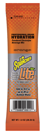 Sqwincher Lite stick packs are perfect for those looking for less calories, no color and no artificial flavor or additives. Sqwincher Lite contains the perfect electrolyte blend, are naturally flavored and naturally sweetened and contain no added color.